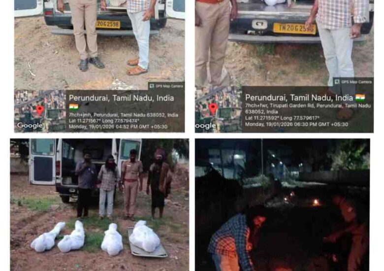 26:01:2026. ஜார்க்கண்டை சேர்ந்த முனி குமாரி அவருக்கு பிறந்து ஒரு நாள் ஆன ஆண் குழந்தை இறந்து விட்டது அந்த சிசுவை அடக்கம் செய்ய குழந்தையின் தாயார் வசம் போதிய வசதி இல்லாத காரணத்தால் உதவி ஆய்வாளர் அவர்கள் பெருந்துறை காவல்
