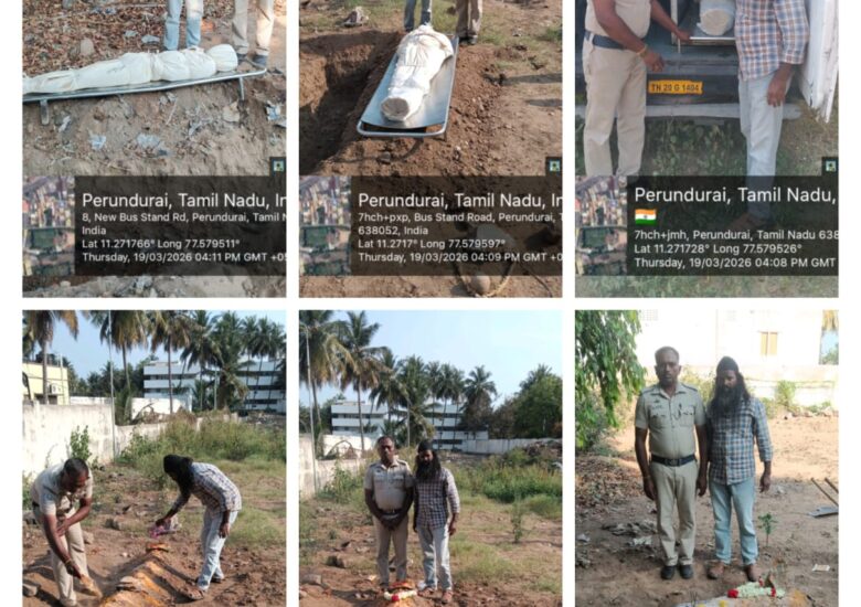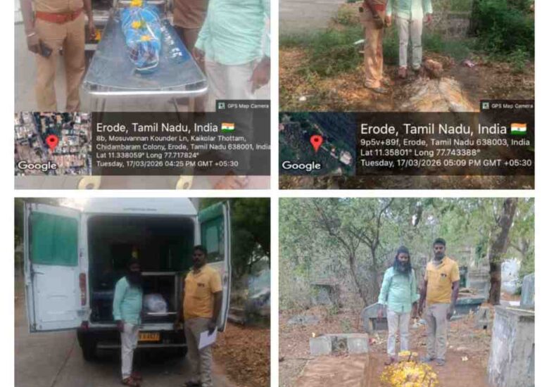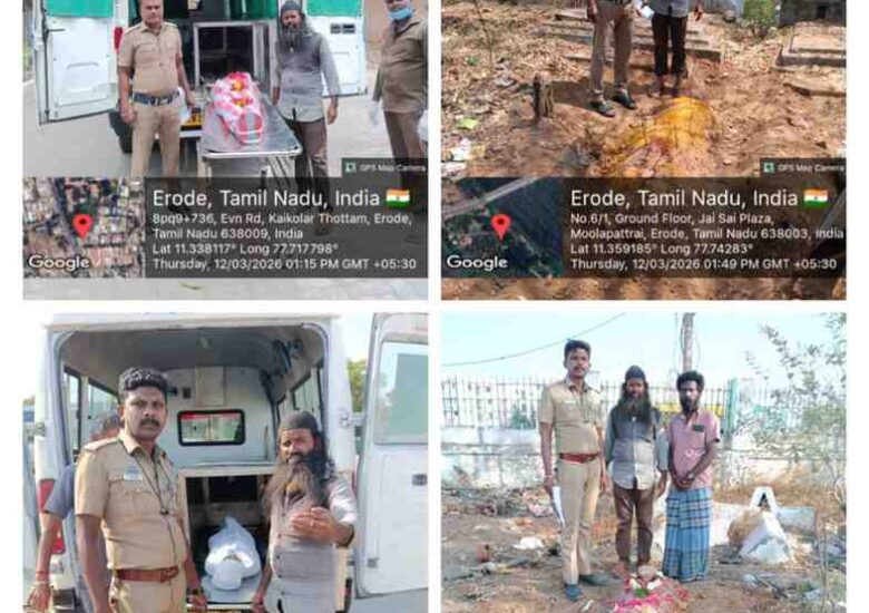 22:03:2026. சுமார் 40 வயது மதிக்கத்தக்க பெயர் விலாசம் தெரியாத ஆண் இறந்துவிட்டார்… உதவி ஆய்வாளர் அவர்கள் பெருந்துறை காவல் நிலையம் ஈரோடு மாவட்டம் கேட்டுக்கொண்டதற்கு இணங்கி மனிதநேய கரங்கள் அறக்கட்டளை நிறுவனர் S கமருதீன் இறந்தவரின் உடலை பெற்று பெருந்துறை